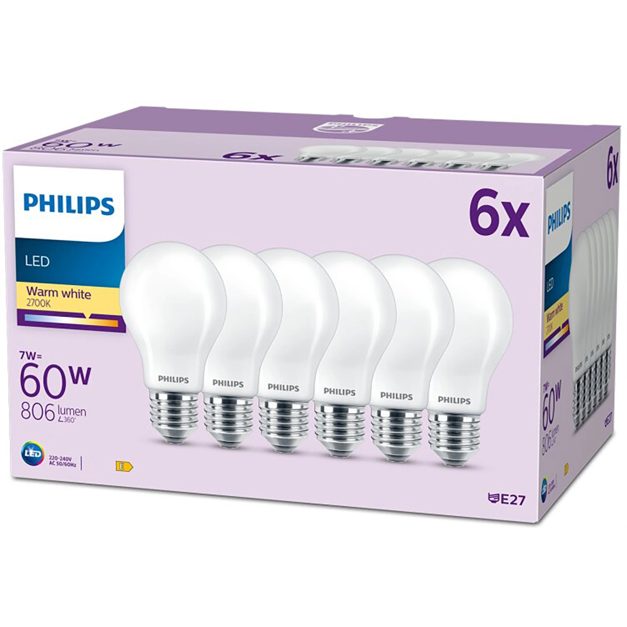 Odkryj niesamowitą wydajność i efektywność z zestawem sześciu żarówek LED Philips, które zamienią Twoje wnętrze w oazę ciepła i komfortu. Dzięki technologi LED o mocy znamionowej 7W, z powodzeniem zastępują tradycyjne żarówki 60W, oferując tym samym oszczędność energii oraz wydajność. Każda żarówka emituje strumień świetlny o wartości 806 lumenów i współczynniku oddawania barw Ra 80, co gwarantuje wierne oddanie kolorów w Twoim otoczeniu.