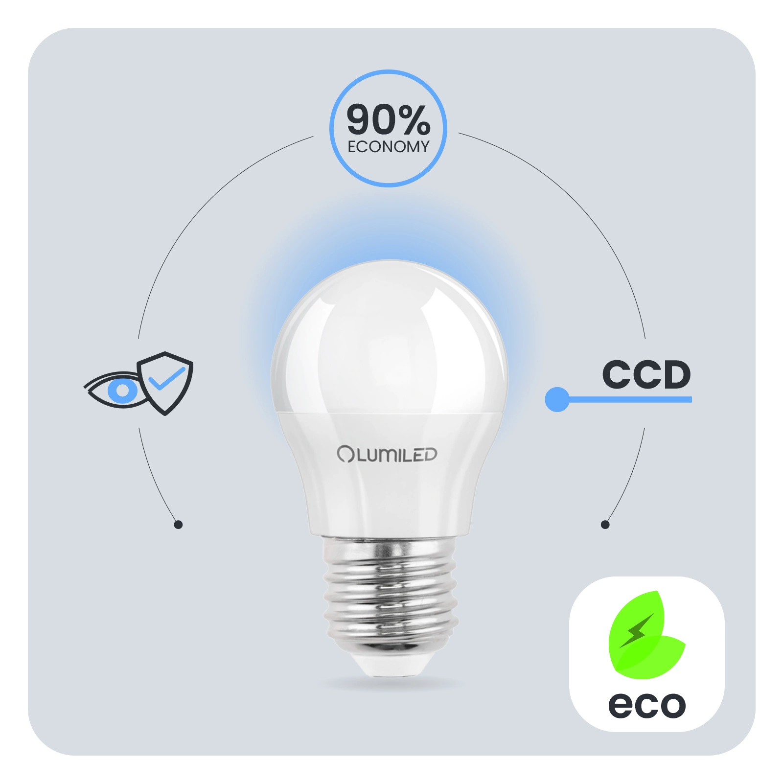 Zastosowana przetwornica CCD w żarówce LED sprawia, że żarówka jest odporna na spadki i wzrosty napięcia w sieci. Światło nie migocze, ani nie drży. Przetwornica CCD sprawia, że żarówka jest bezawaryjna przez długi czas. Żarówki LUMILED zaprojektowane zostały z myślą o jej użytkownikach. Słaba jakość oświetlenia może prowadzić do zmęczenia oczu dlatego nasze Żarówki posiadają opracowanie techniczne Eye Safe zapewnią komfortowe i przyjazne oświetlenie twoim oczom w każdym pomieszczeniu.