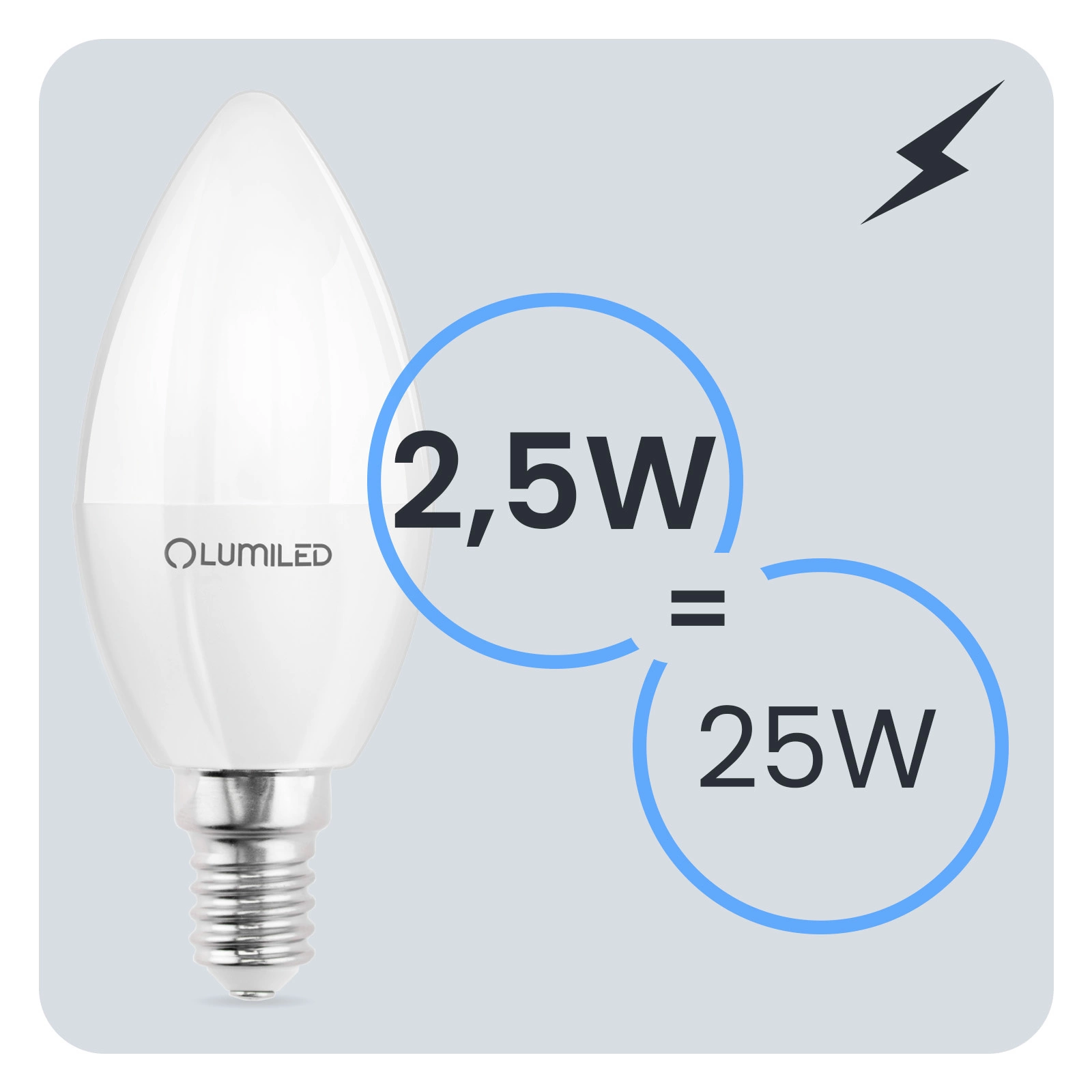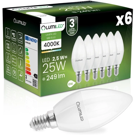 6x Żarówka LED E14 Świeczka B35 2,5W = 25W 249lm 4000K Neutralna 180° LUMILED