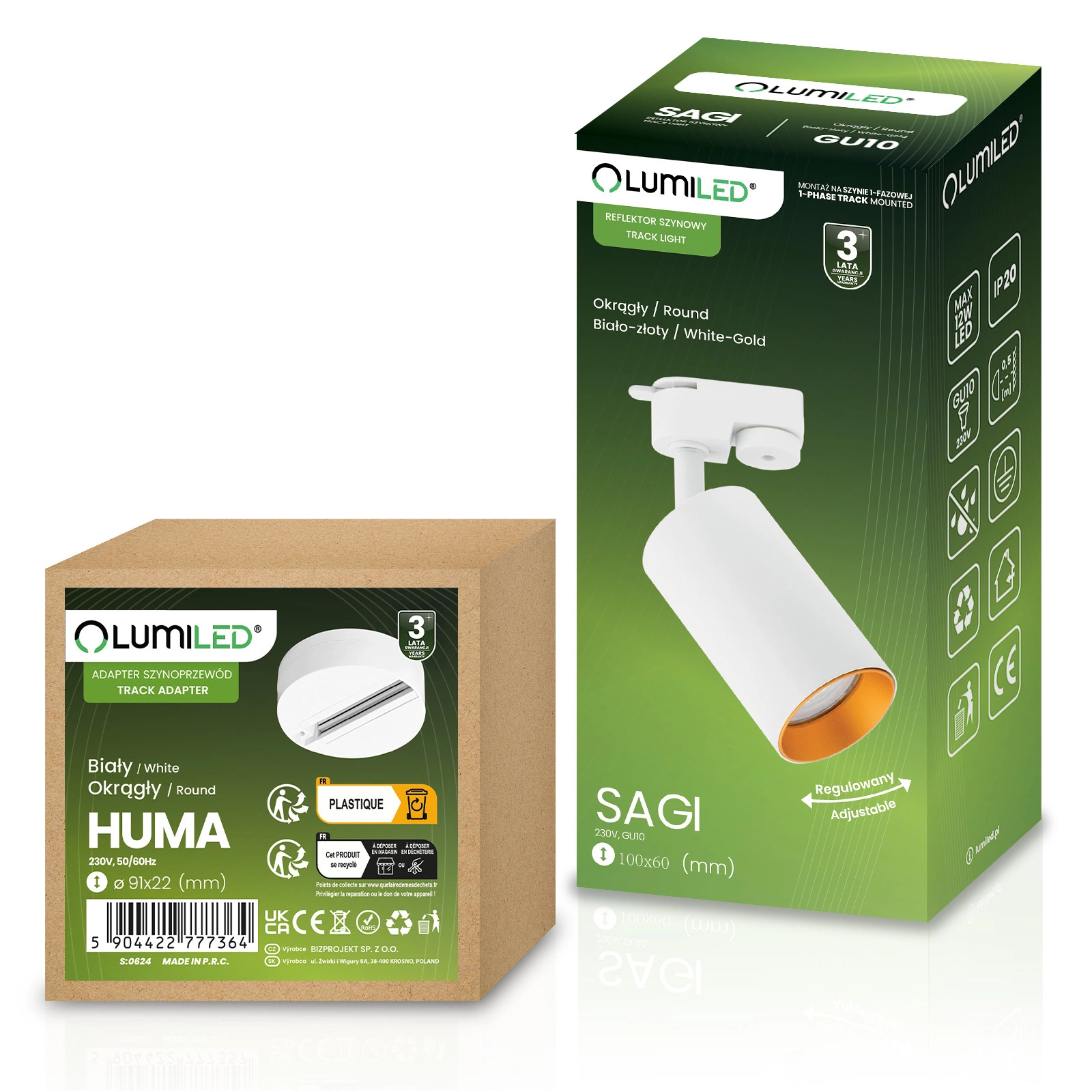 ZESTAW LUMILED SZYNA HUMA BIAŁY + REFLEKTOR SZYNOWY SAGI BIAŁO-ZŁOTY
