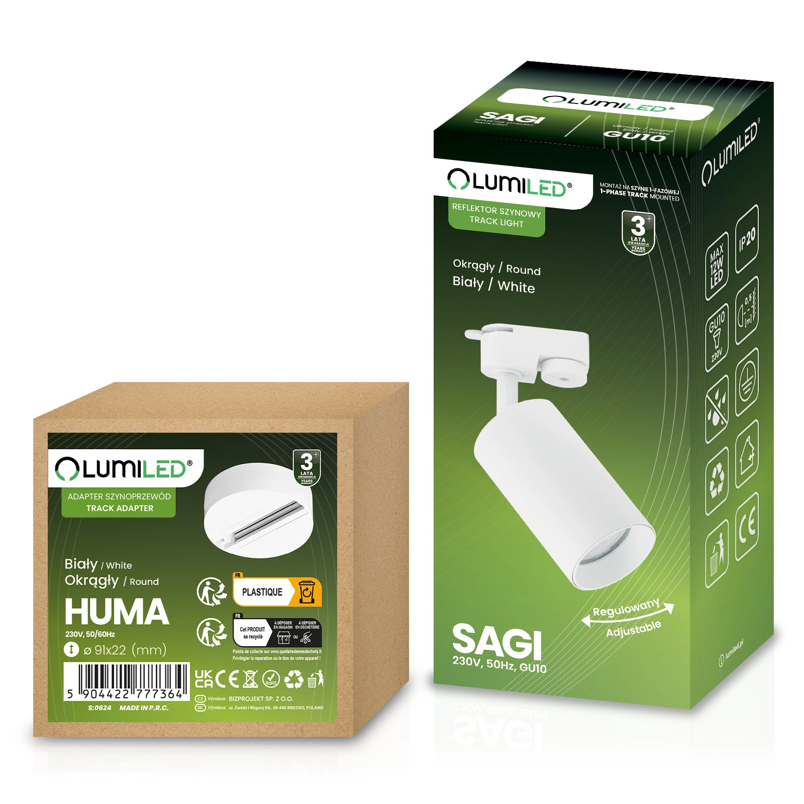 ZESTAW LUMILED SZYNA HUMA BIAŁY + REFLEKTOR SZYNOWY SAGI BIAŁY