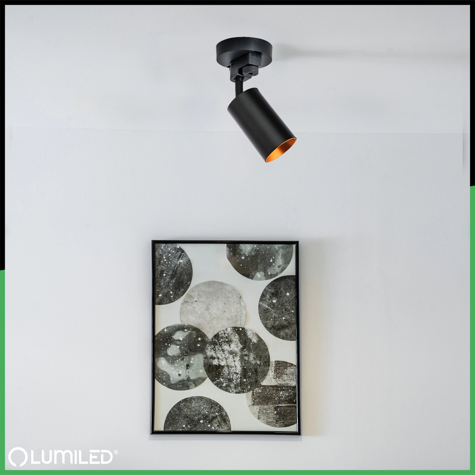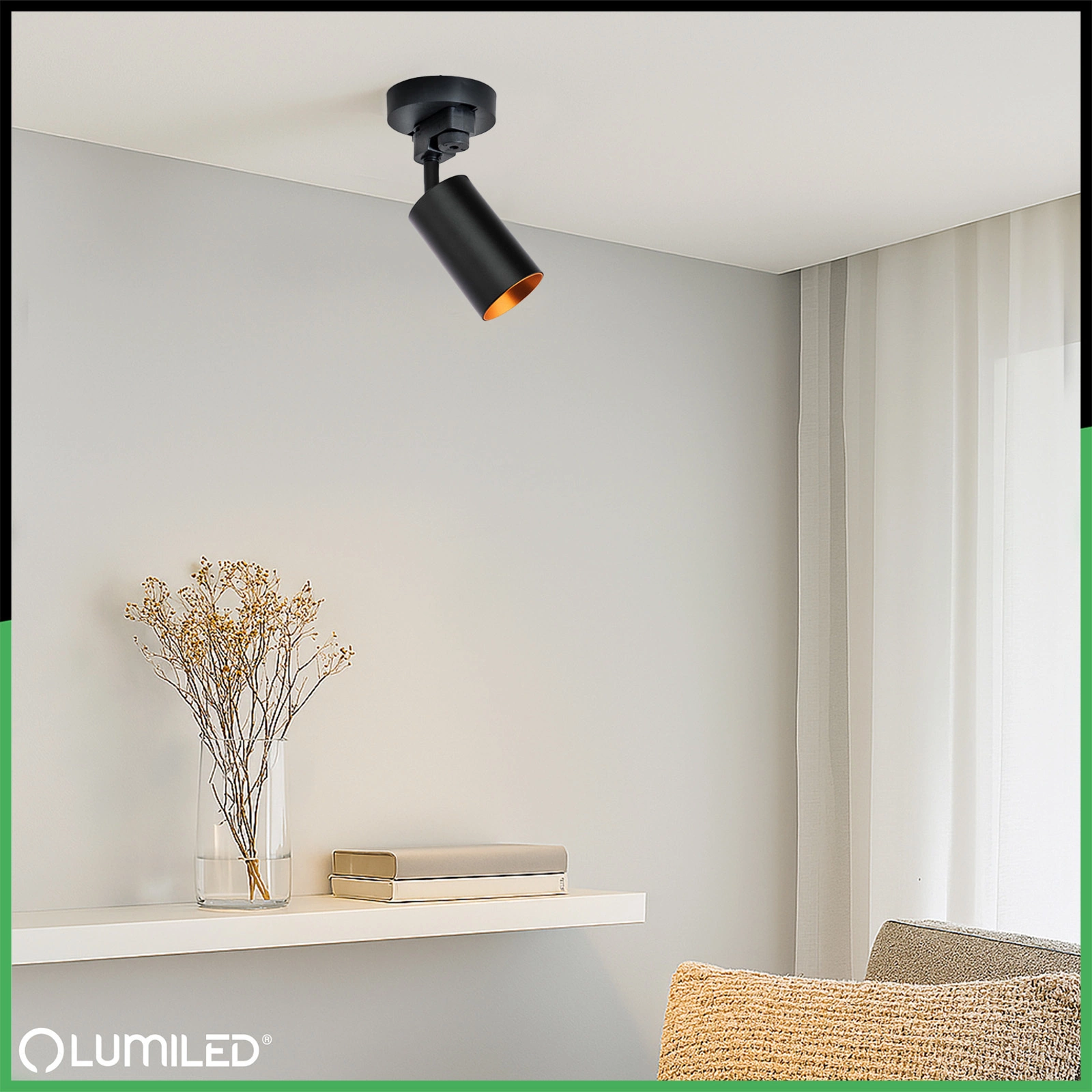 - Nowoczesny wygląd – czarna oprawa ze złotym pierścieniem dodaje wnętrzu elegancji, nie przytłaczając przestrzeni