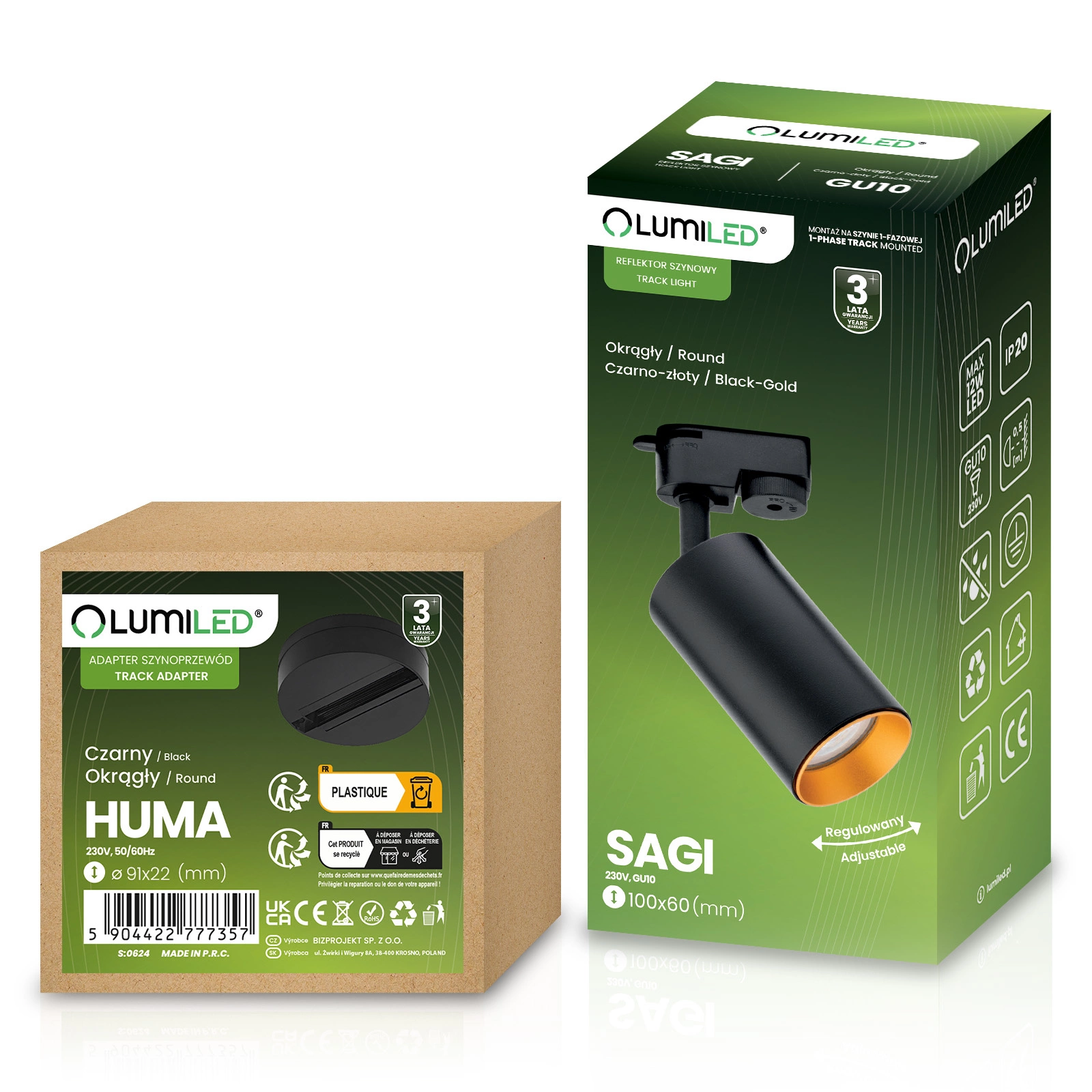 ZESTAW LUMILED SZYNA HUMA CZARNY + REFLEKTOR SZYNOWY SAGI CZARNO-ZŁOTY