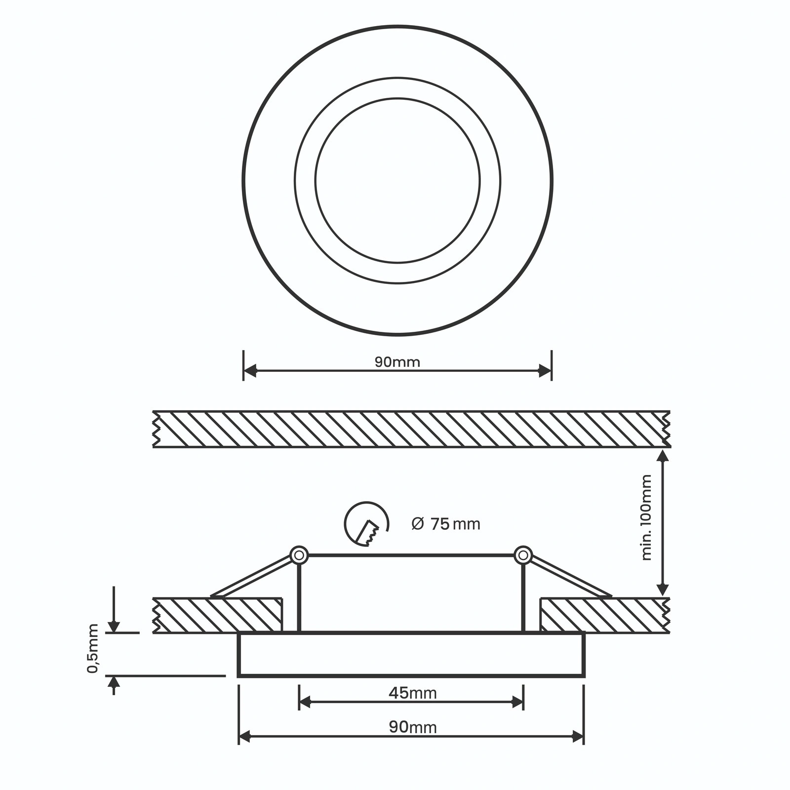 - Kompaktowe wymiary ułatwiają montaż w sufitach podwieszanych oraz w miejscach z ograniczoną przestrzenią montażową.