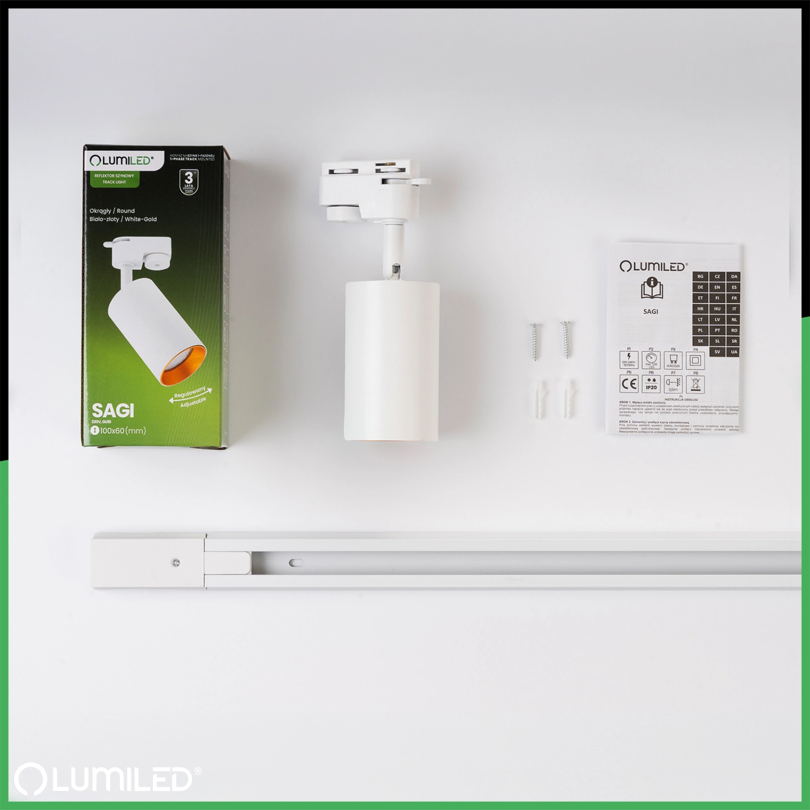 Zestaw Szyna Oświetleniowa Szynoprzewód 2m + 4x Reflektor Szynowy SAGI GU10 Biało Złoty LUMILED