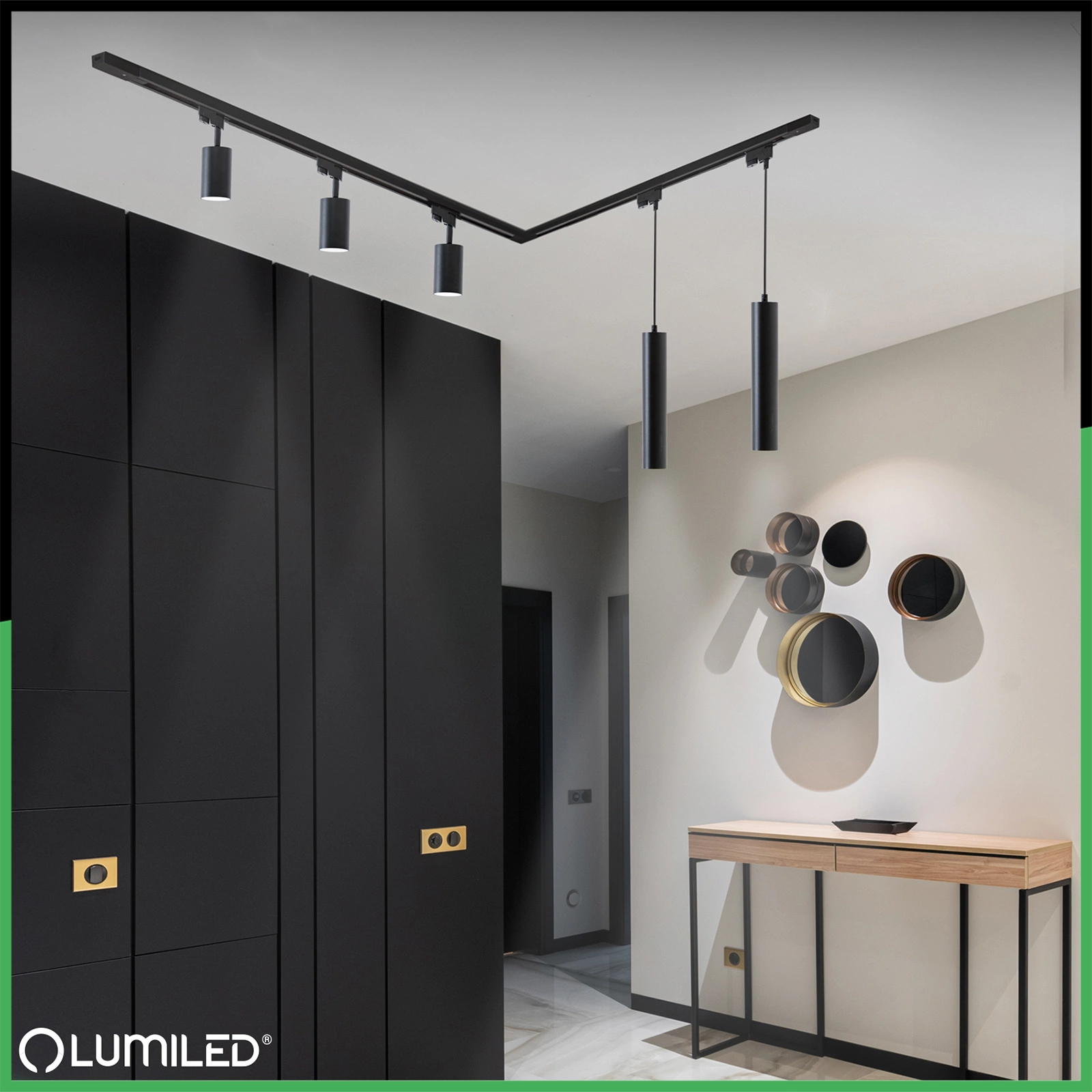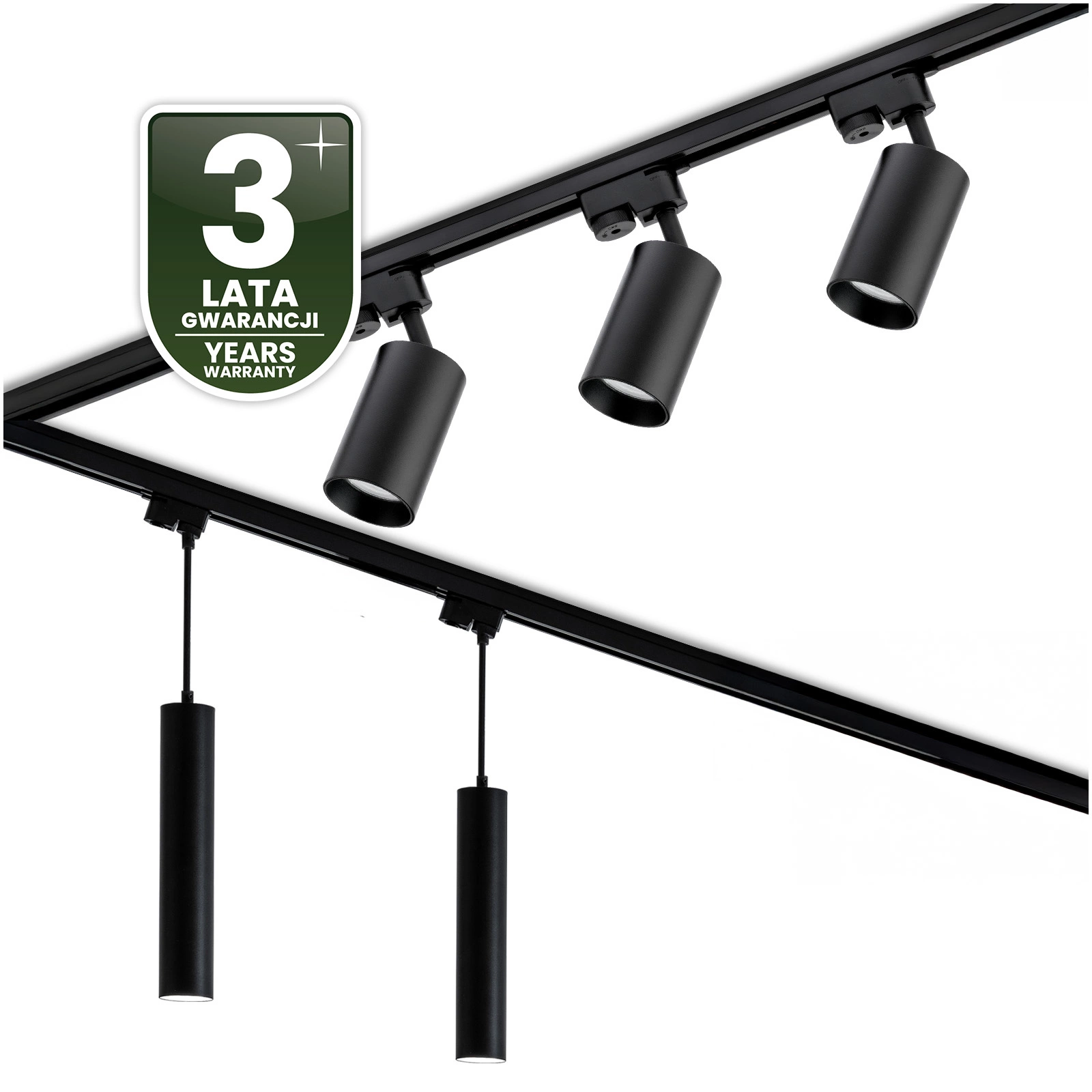 Zestaw Szyna Oświetleniowa Szynoprzewód 3m + 5x Reflektor Szynowy GU10 + Łącznik Kątowy Czarny LUMILED