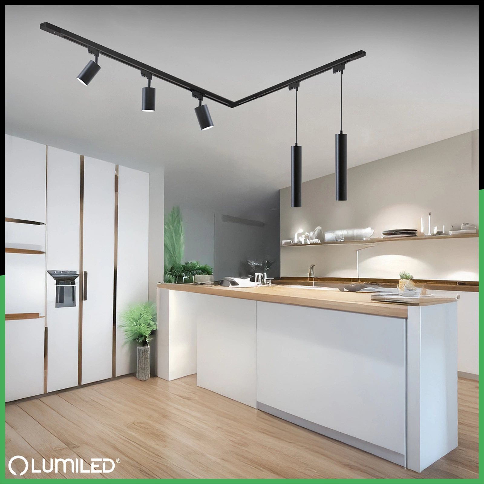 Kompletny zestaw oświetleniowy marki Lumiled to idealne rozwiązanie do nowoczesnych wnętrz, w których liczy się funkcjonalność, estetyka i trwałość. System składa się z dwóch szyn o długości 2 m i 1 m, które połączysz za pomocą łącznika kątowego – dzięki temu łatwo stworzysz funkcjonalne oświetlenie nawet w narożnikach. Trzy reflektory SAGI zapewniają precyzyjne, kierunkowe doświetlenie, a dwie lampy SOPLO z regulowaną długością przewodu pozwalają efektownie podświetlić stół, wyspę kuchenną lub strefę relaksu. Samodzielnie ustawiasz wysokość i kierunek świecenia – bez zmian w instalacji.