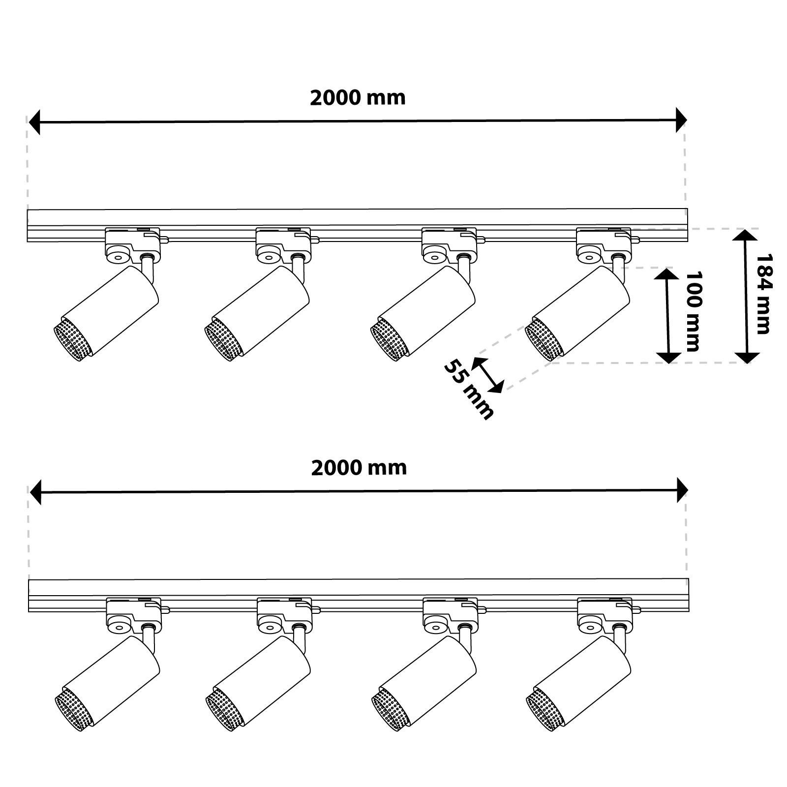 ZESTAW Szynoprzewód Listwa Szyna 4m + 8x Lampa Sufitowa Reflektor GU10 Oświetlenie Szynowe LUMILED