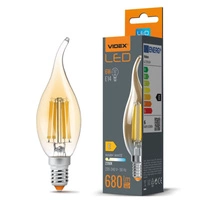 Chwilowo niedostępnyŻarówka LED E14 C35 Świeczka 6W = 52W 680lm 2200K Ciepła 360° FILAMENT Bursztynowa Videx