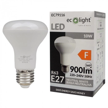 Chwilowo niedostępnyŻarówka LED Reflektor R63 E27 10W 900lm 4000K Neutralna Ecolight