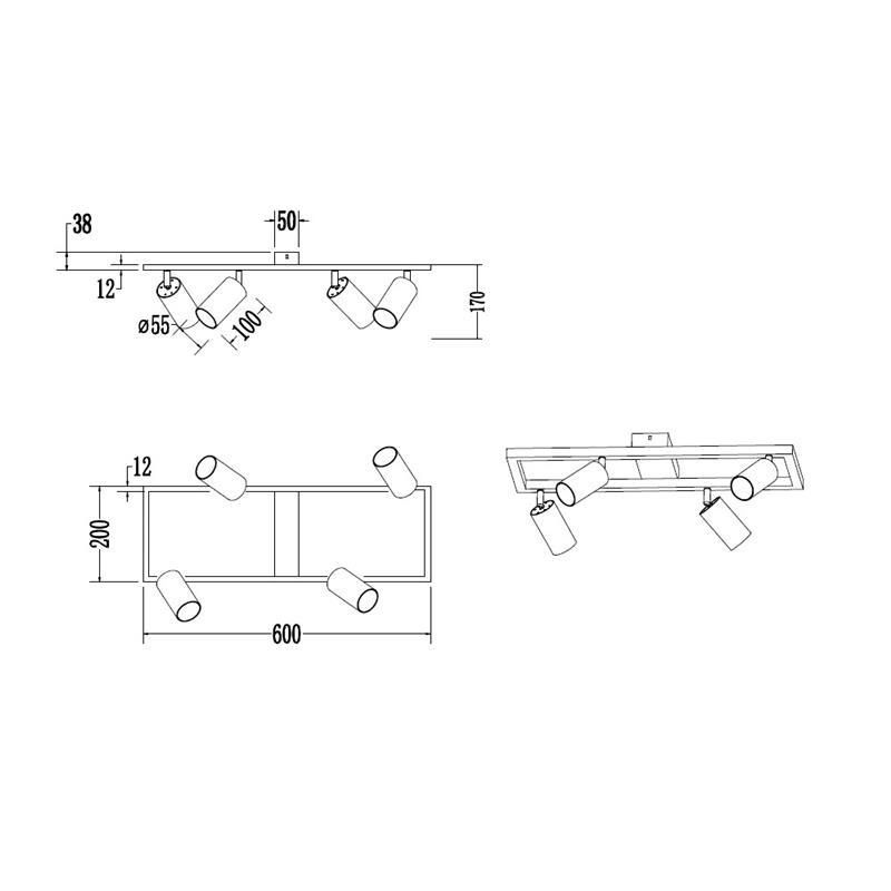 - Wszechstronność - Cztery wymienne źródła światła z trzonkiem GU10 o maksymalnej mocy 35W każdy, zapewniają idealne doświetlenie każdego pomieszczenia.